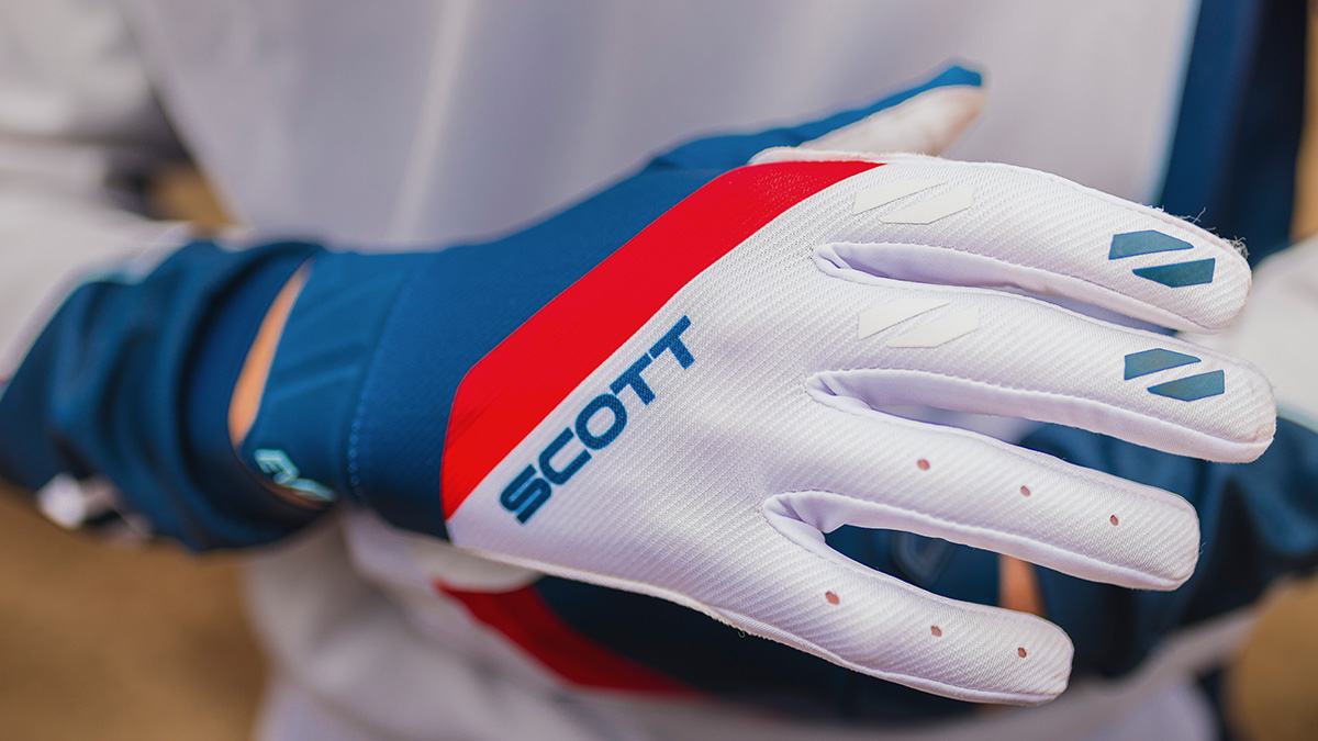 I guanti SCOTT Evo Dirt sono sottili e minimalisti, ma dotati di caratteristiche di elevata qualità. Il palmo in scamosciato AX® offre una sensazione sull’acceleratore mai provata prima, mentre gli inserti in silicone in corrispondenza delle leve garantiscono il miglior controllo.